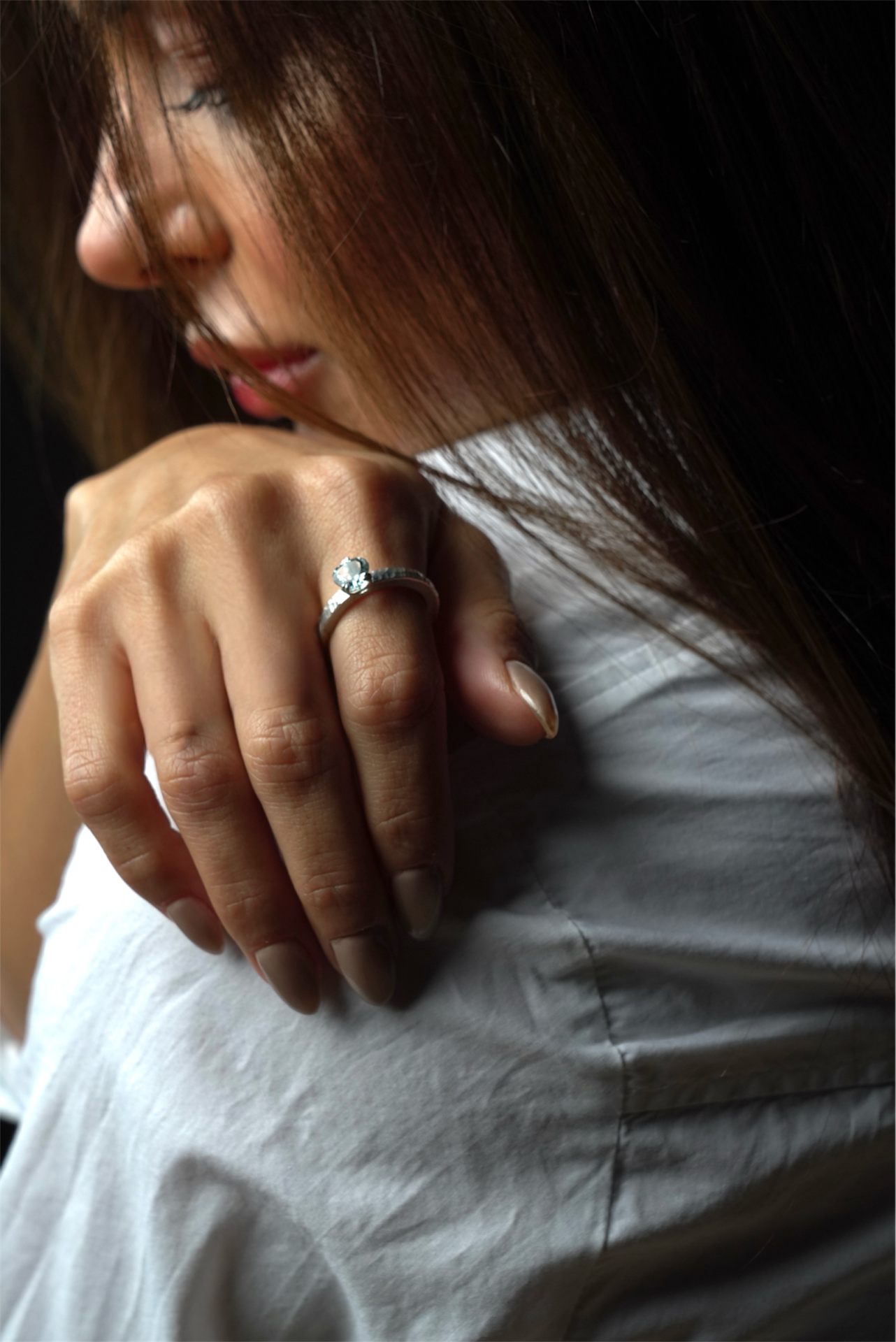 Anillo de plata y aguamarina facetada en forma de corazón.