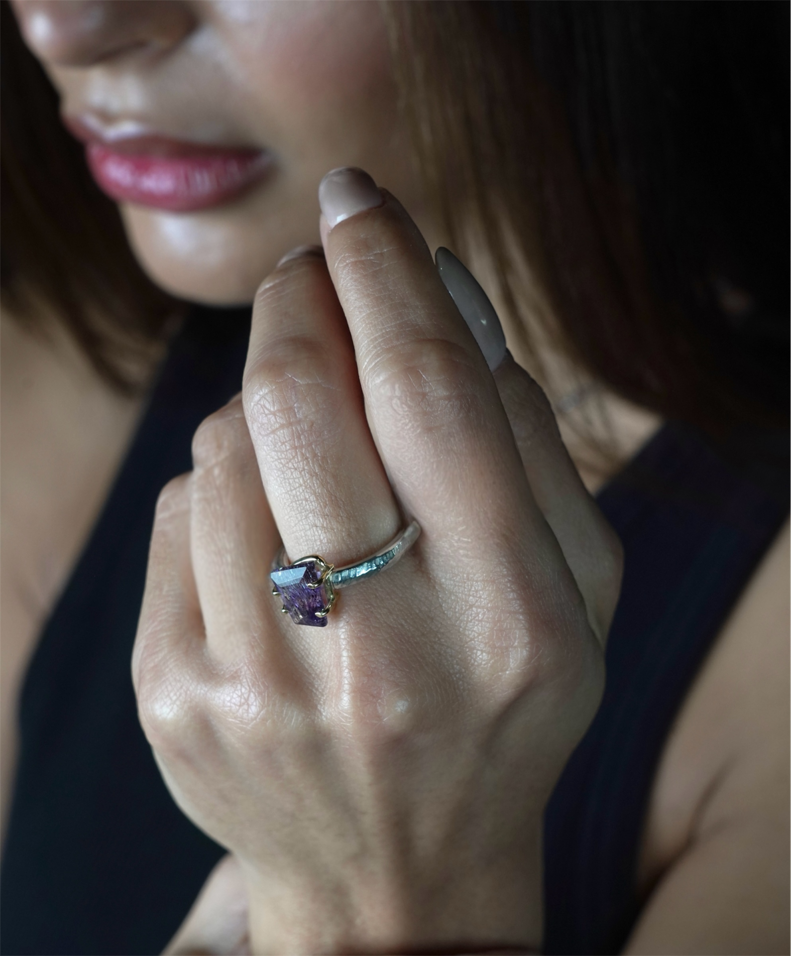 Anillo de plata, oro amarillo de 18k y un precioso Superseven con talla fantasy.