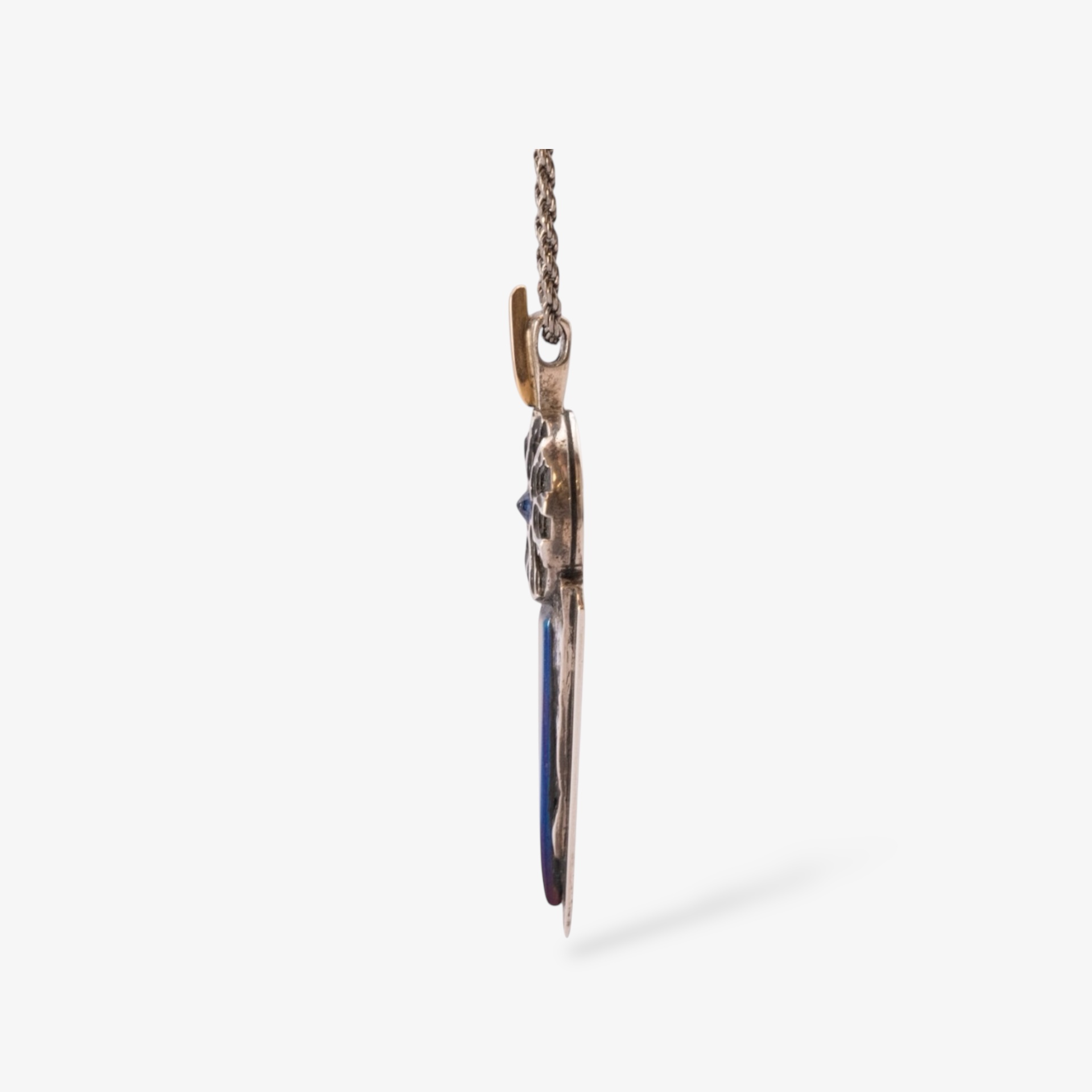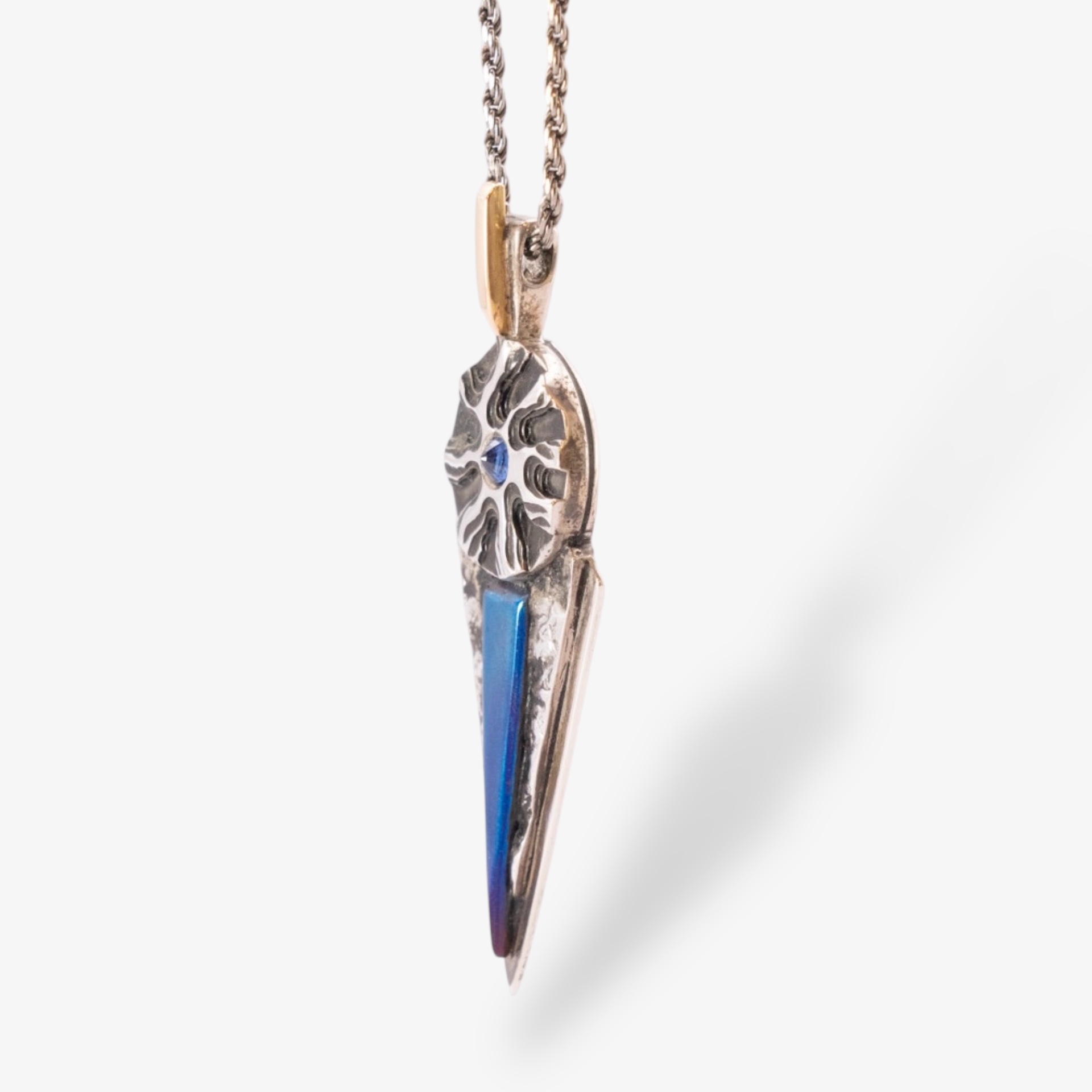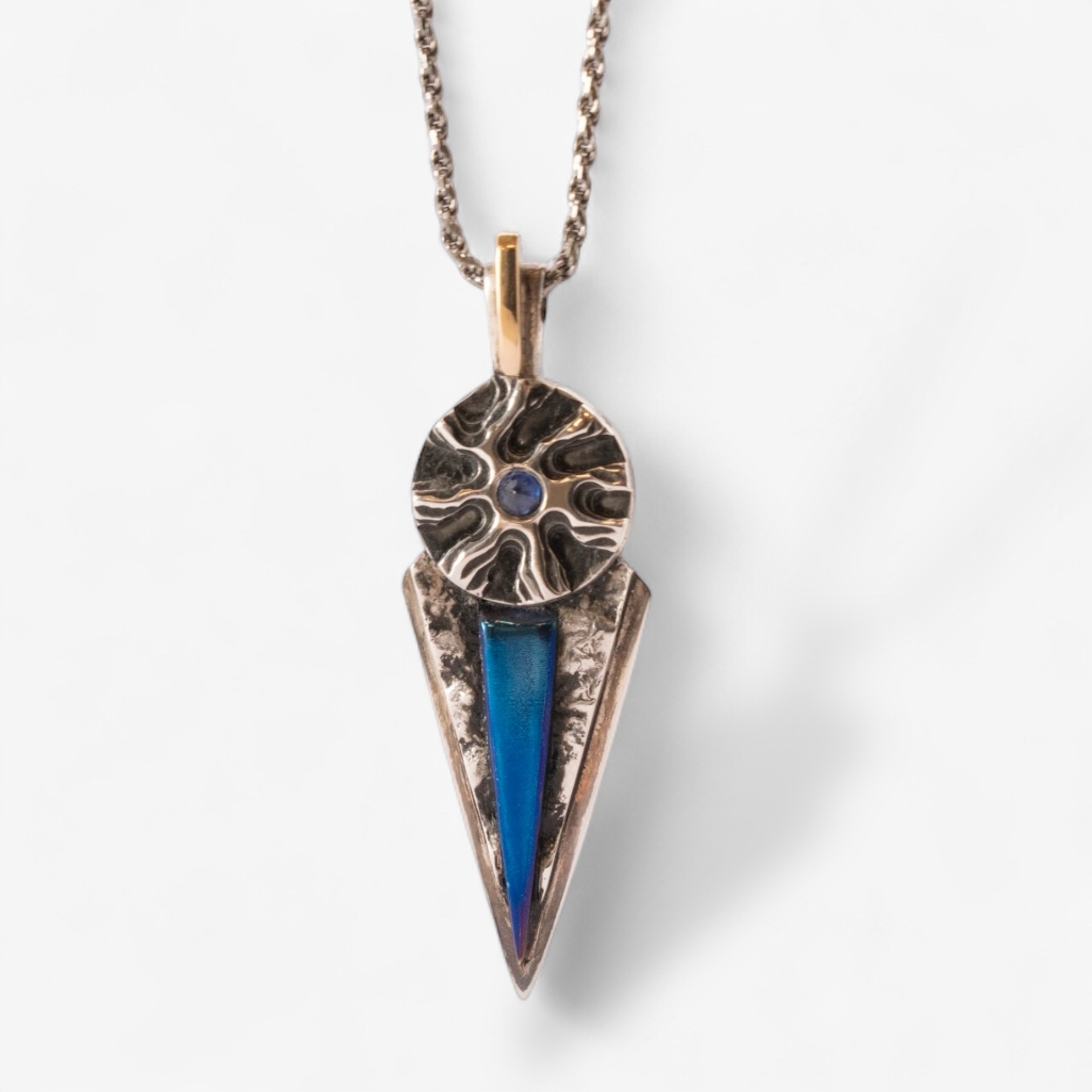 Colgante de plata, titanio, oro de 18k y zafiro azul.